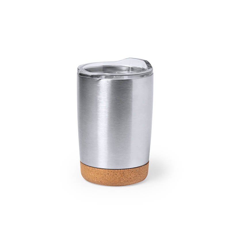 NOVINKA 2025. Top table glass made of a combination of a natural cork base with a stainless steel body in white finish, 380 ml capacity. With double cover for better and more durable preservation of temperature and original dispenser lid with transparent opener. Presented in an attractive design box.