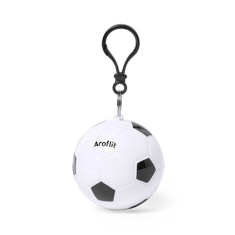 NOVINKA 2025. Keyring poncho with original football design. Inner poncho made of LDPE, one size fits all for adults (120x90cm). Including carabiner for transport and with a wide branding area.