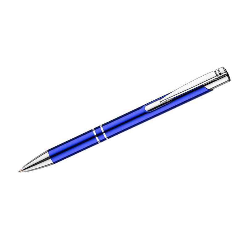 Tlačítková propiska z recyklovaného hliníku. Modrý inkoust.