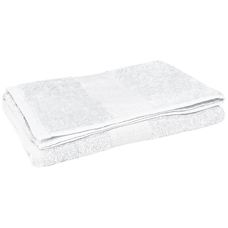 Bath Towel.Made with absorbent high-quality 100% cotton terry fabric for a fresh feeling all day long.Textured with terry loops for extra softness.Features a decorative Jacquard border at one end and hemmed edges for added strength and durability.The BUBBLE and SOAP towels complement each other to create a complete set.Suitable marking methods: embroidery, stitching. Ideal for sports use, and everyday bathing.