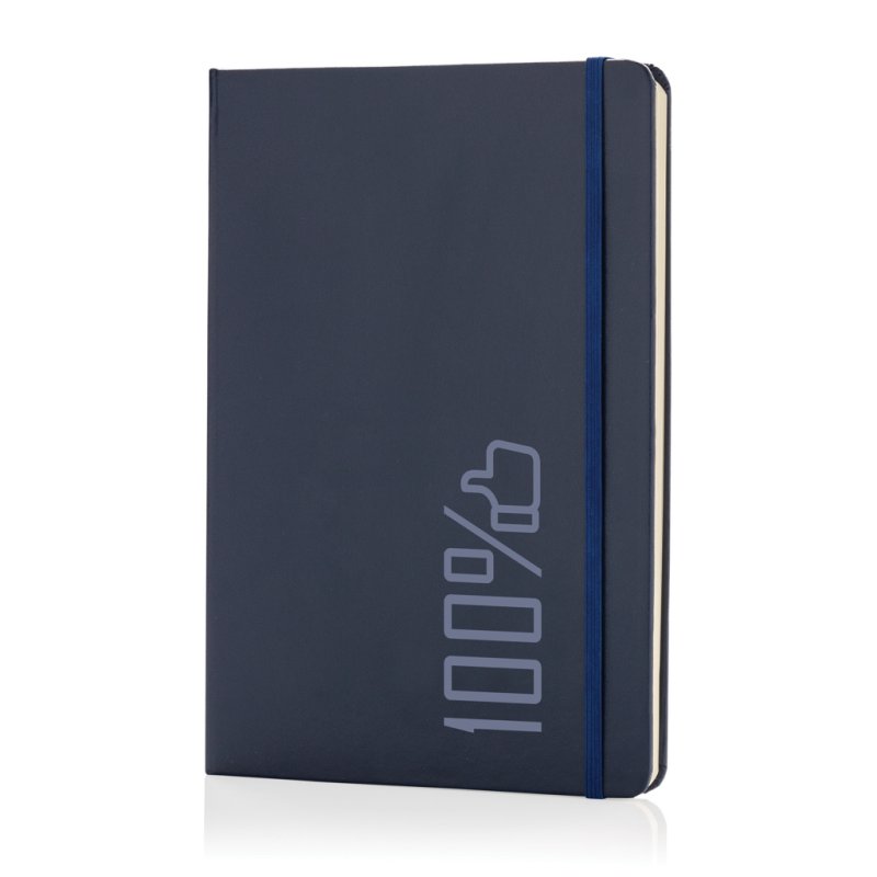 Linkovaný základní poznámkový blok A5 s pevnými deskami s elastickým zavíráním a záložkou ze stuhy. 144 listů papíru s gramáží 70 g/m2. Krémové stránky.