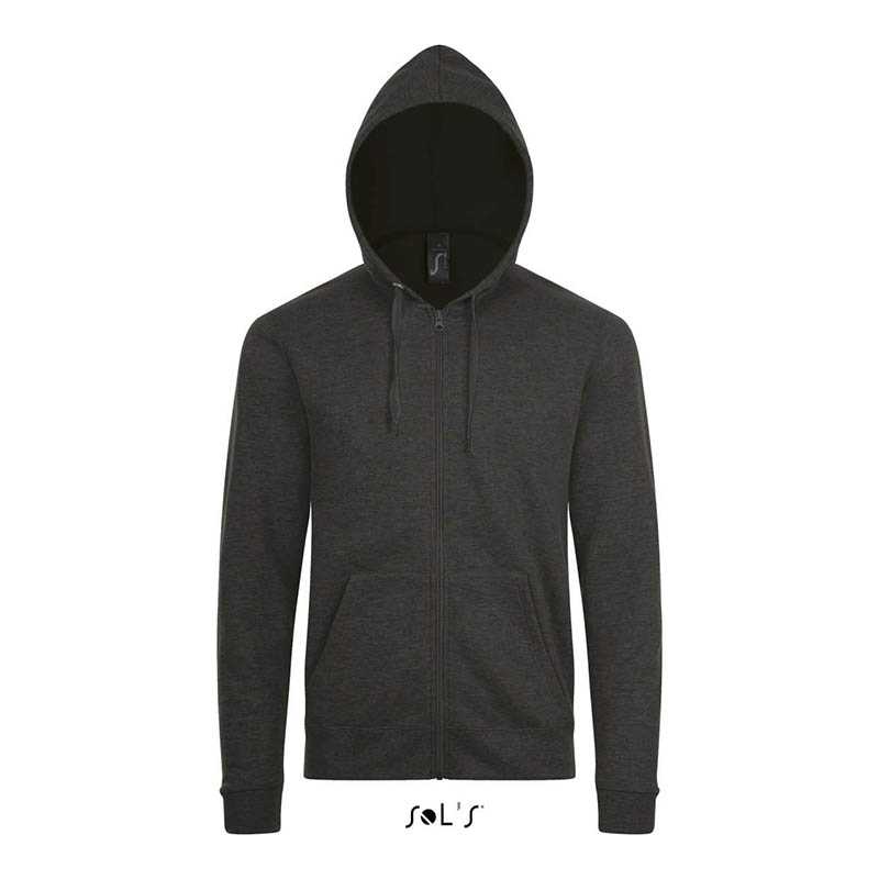 Full zip hooded UNISEX Sweatshirt. Brushed Fleece. 60% Cotton - 40% Polyester. 270 g/m2 Brushed interior, soft comfortable and warm 3 panel hood lined with single jersey Nylon zipp