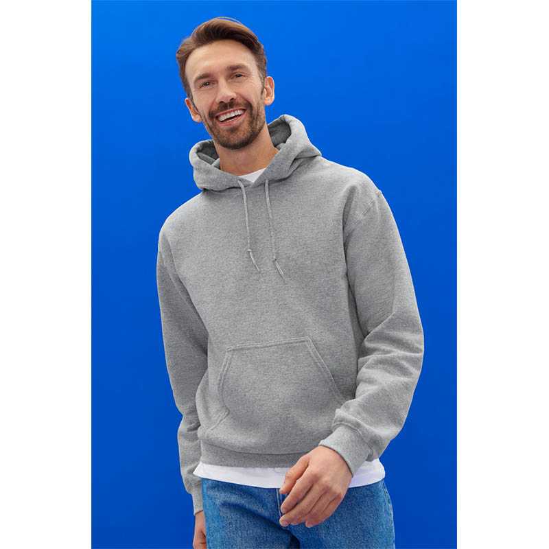 80% cotton/20% polyester;Brushed fleece;Set-in sleeves;Tubular cut;Lined hood with matching drawstring;Kangaroo pockets;Ribbed cuffs and hem;;;Color shade differences may occur at Dark Grey and Light Royal Blueproducts;