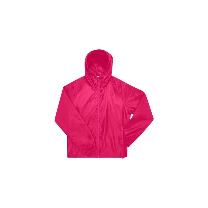 Full-zip opening with zip puller , Hood concealed inside the collar , Fold-away jacket (K-Way® system) in pocket with double slider zip, Adjustable bottom hem with draw cord , The Windbreaker, Quality, Out: 100% Taffeta® nylon, waterproof, Professional informations, 10 pcs/pack & 50 pcs/carton. BS02 Značka : B&C . Materiál : 100% nylon