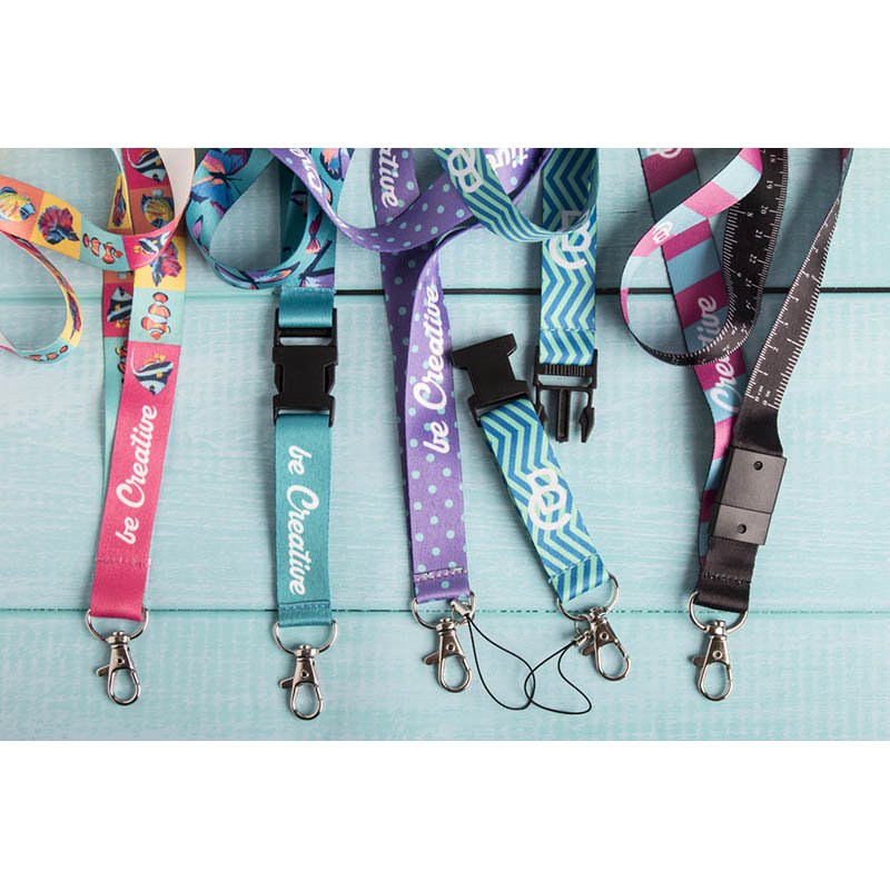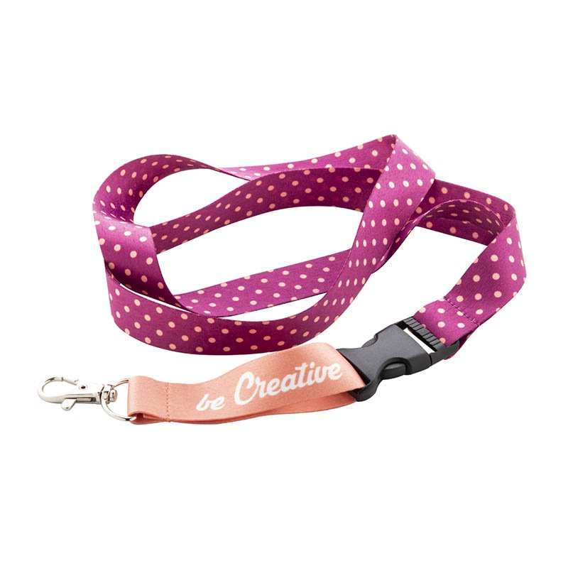 Polyesterový lanyard na zakázku s kovovou odepínací karabinkou a sublimačním potiskem na obou stranách. Cena zahrnuje sublimační potisk, nezahrnuje tiskovou přípravu. Min. mn.: 100 ks.