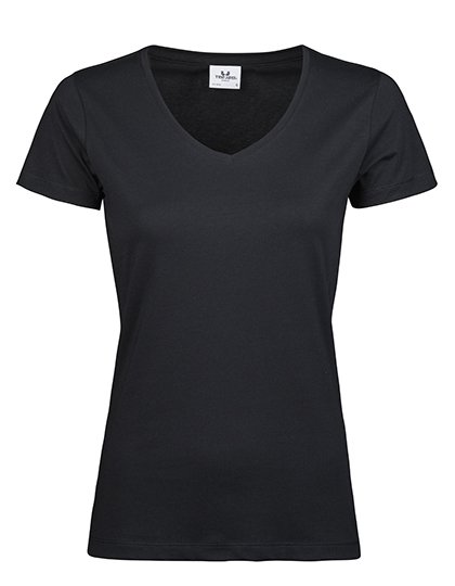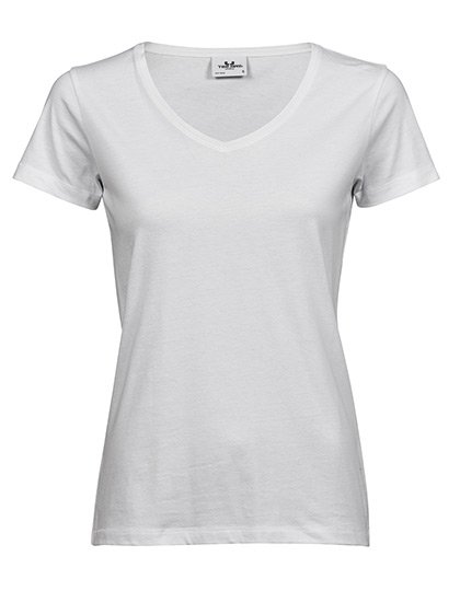 Elastické dámské tričko James & Nicholson s kulatým výstřihem..Vnější materiál: 95% Bavlna, 5% Elastan.Měkká elastická tkanina .Hluboký výstřih.Volný střih .Nová délka: Velikost M 64 cm .Hmotnost: 160-170 g / m2.Balení: 10/50 . (ks v jednom sáčku / celkem