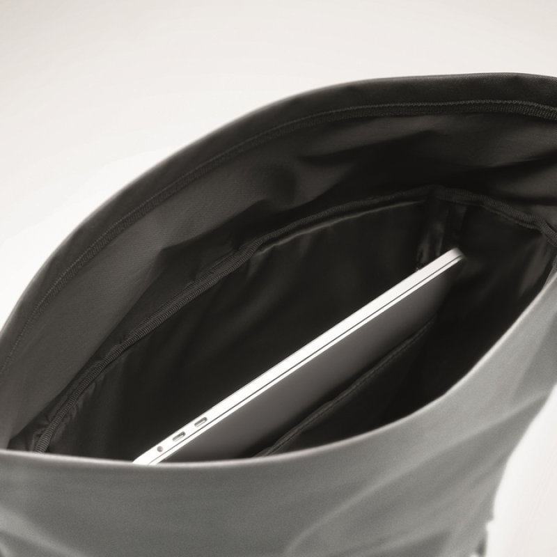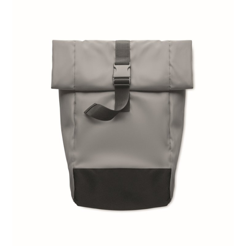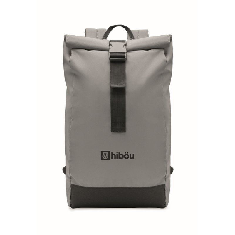 Rolovací batoh z vysoce reflexního polyesteru 190T pro 15 palcový notebook. Vnitřní strana se zapínáním na suchý zip. Polstrovaná záda, popruhy a dno. Přední kapsa na zip. Spodní část z recyklovaného polyesteru 600D.