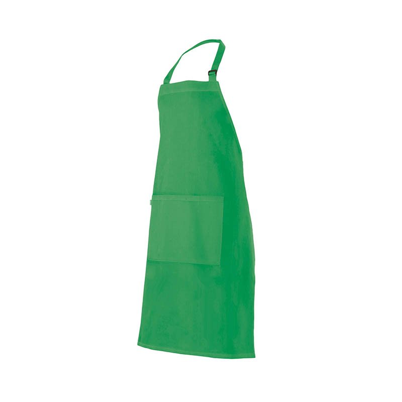 Two ties at ends to fasten garment Buckle to adjust neckband 25 different colours One pocket: 1 front pocket