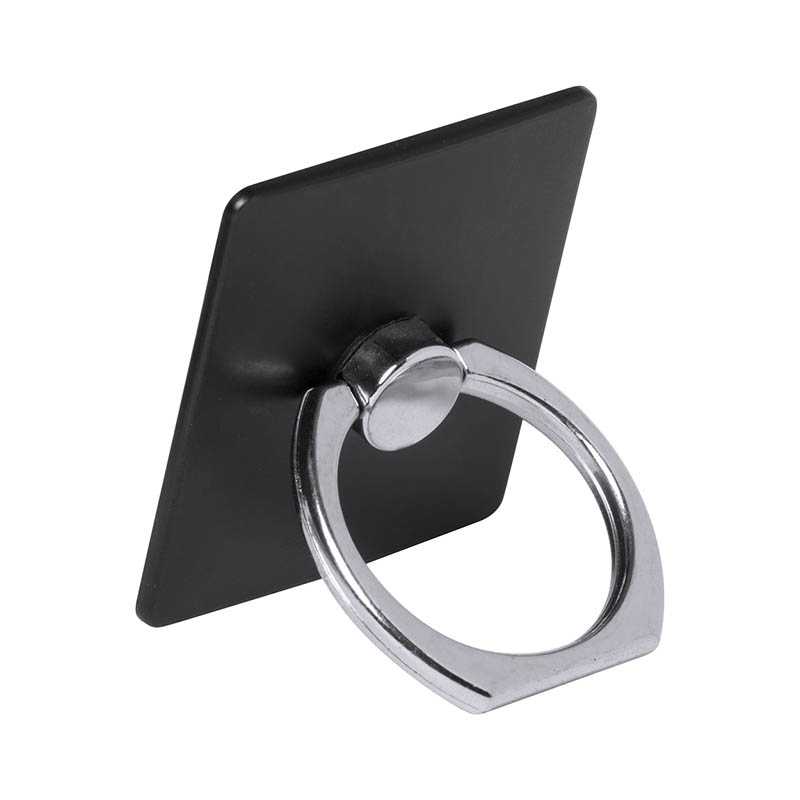 Kulatý, plastový stojánek na mobil s kroužkem na prst se samolepícím stranou.