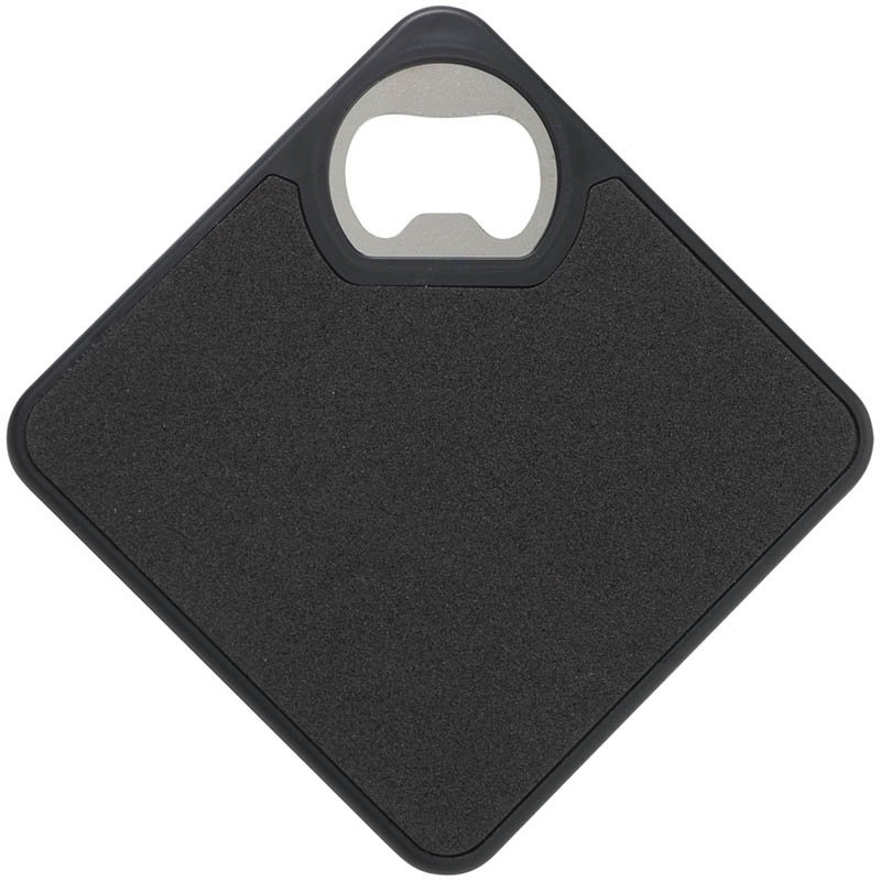Coaster and metal opener in one. With non-slip base. Can be printed with your own photo, logo or own design in full colour.