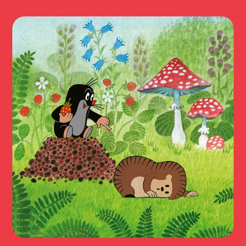 Krteček – postava mnoha kreslených příběhů Zdeňka Milera, které obletěly celý svět. Poznámkový kalendář s ilustracemi z pohádek doplňuje přehledné kalendárium od září 2025 do prosince 2026 v osmi jazycích, měsíční fáze, důležité svátky a prostor pro pozná