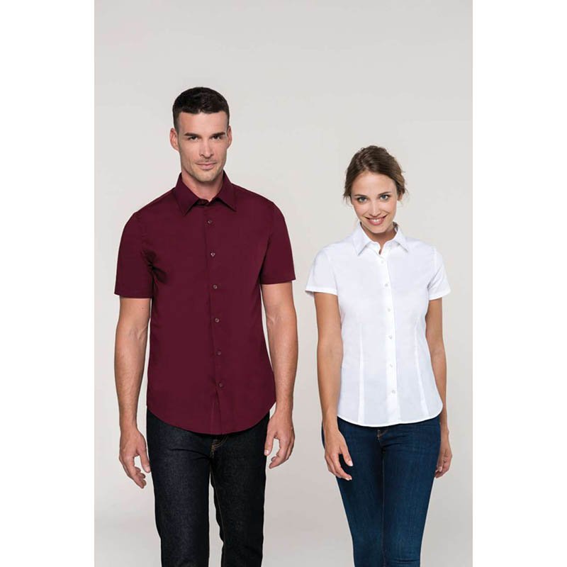 Short Sleeve Shirt with Two Pockets. Made of a lightweight 210 yarn cotton-polyester blend poplin fabric for strength and durability. Matching button front closure and a back pleat to enhance mobility.Two reinforced pleated chest pockets with flap and matching button fastening for convenient storage and showcase the branding.Outer hem on sleeves and reinforced seams for added strength and durability.Suitable marking methods: screen printing, embroidery, transfer printing, badges, shields. Ideal as workwear, corporate uniforms and security uniforms.