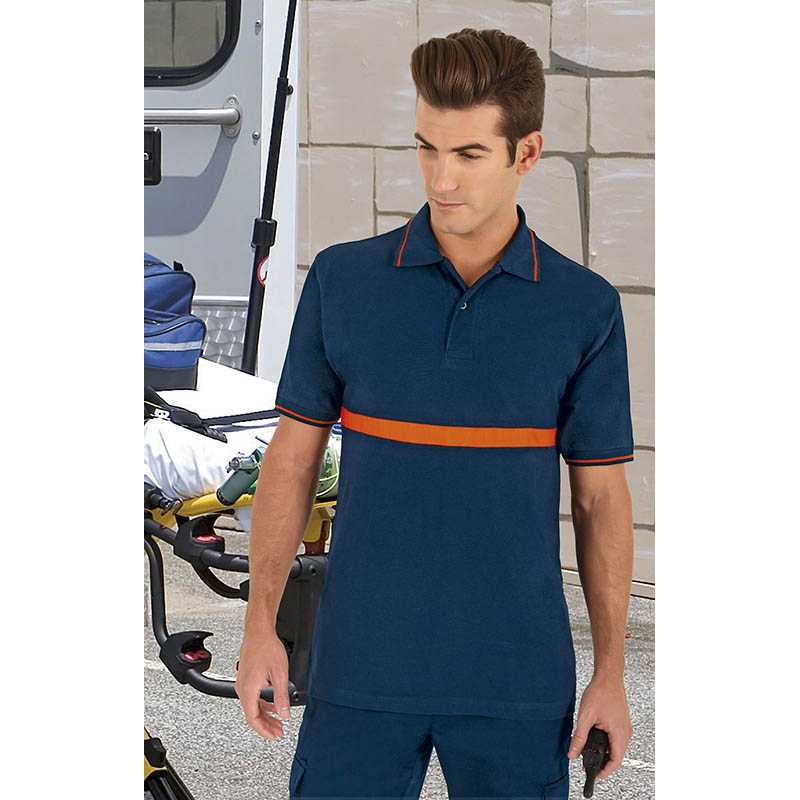 Two-Tone Short Sleeve Polo Shirt, according to organisations such as Fire-fighters and Civil Defence. Made of 100% cotton pique fabric for a soft and comfortable feel.Orion navy blue base with a horizontal contrasting colour tape sewn around the chest for enhanced visibility.Knitted collar and sleeve cuffs for comfortably fitting, with a subtle contrasting band matching the colour of the sewn band.Double stitching on bottom hem and side slits for enhanced mobility and greater comfort.Suitable marking methods: screen printing, embroidery, transfer printing, badges, shields. Ideal as workwear for these groups, the SERVER model is also available in Short Sleeve T-Shirt and Long Sleeve Polo Shirt.