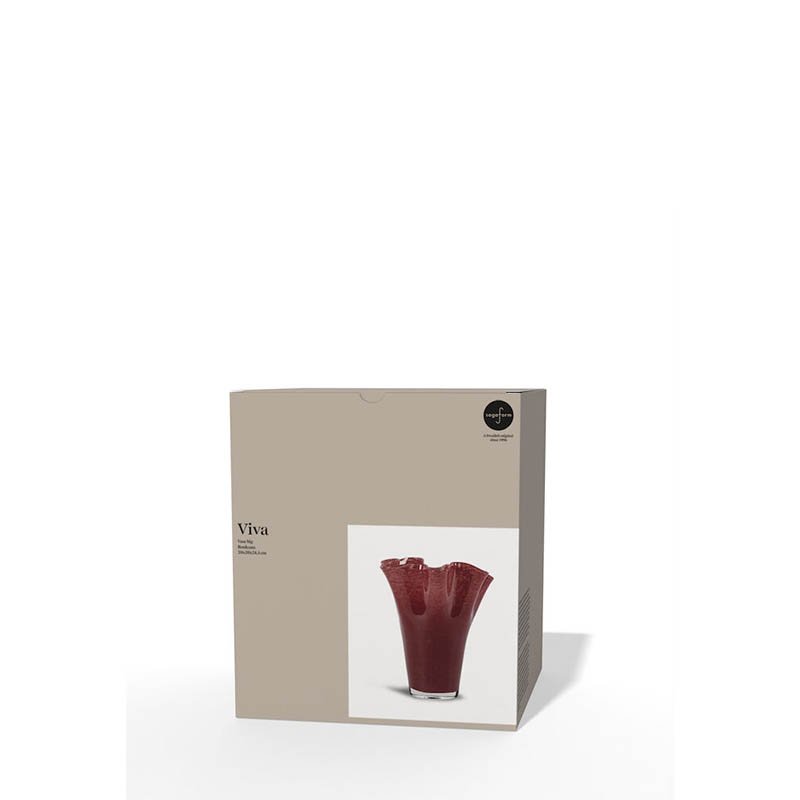 Like a newly bloomed flower unfurling its petals. Viva vase flirts with us in a seductive manner - with its organic shapes and discreet elegance. The Viva vase proudly displays itself like a statuette, with or without green leaves and flowers. The large Viva vase in Bordeaux-colored glass adorns any beautiful table and instantly creates a cozy atmosphere. A Swedish original that has a natural place in every home. All vases are handmade and unique. Comes in a classic gift box. Designed by Studio Sagaform. Materiał: hand-blown glass Waga: 1700 g Size: width 20 cm, height: 24,5 cm, length: 20 cm Color: Wine red Technique Comment: Handmade; size, shape, and color may vary.