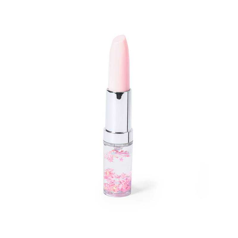 NOVINKA 2025. Original pen in the shape of a lipstick. With liquid inside and in a colourful design. With hood and in blue ink.