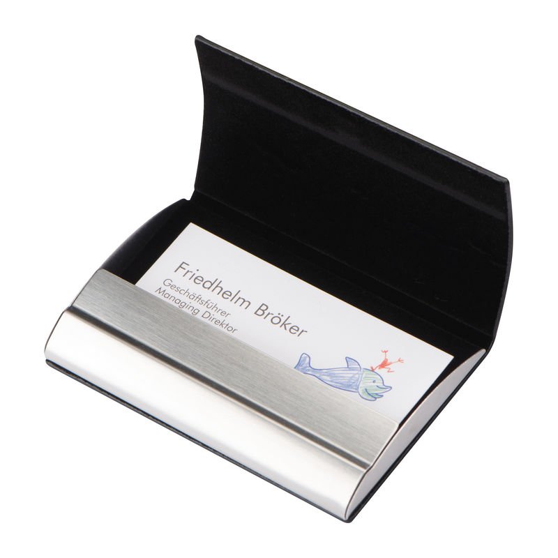 Business card holder ATLAS: with magnetic clasp and metal plate for advertisement