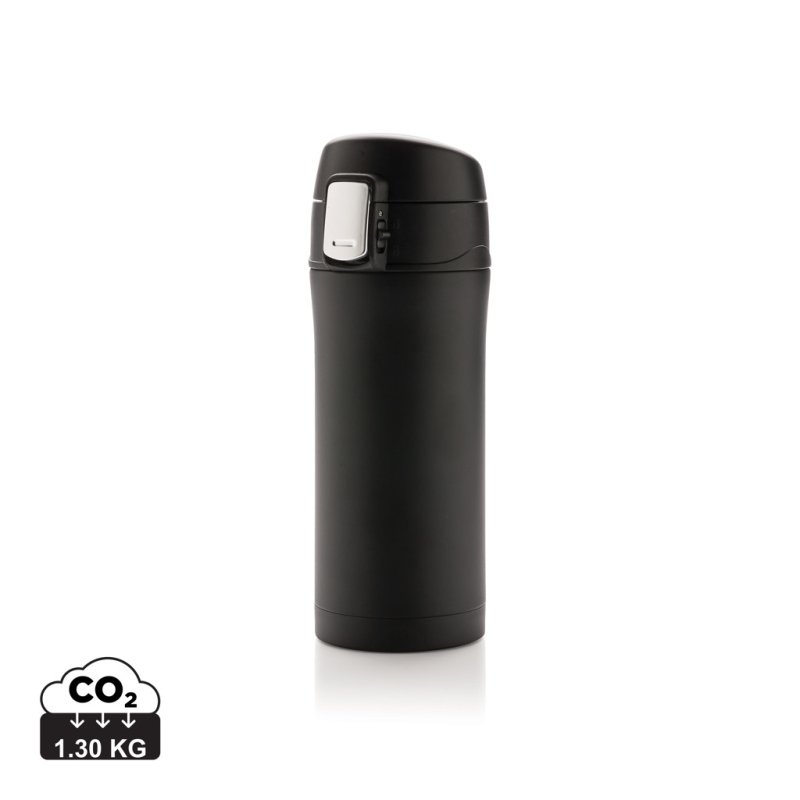 Termohrnek v moderním metalickém provedení s dvojitou steˇnou z nerezavějící oceli. Nápoje uchová až 5h teplé a 15h studené. Uzáveˇr lze po uzavření uzamknout pro zabránění vylití tekutiny. Jedinecˇný design umožnˇuje pohodlné a bezpecˇné uchopení a ovládání otevírání jednou rukou. Uzávěr navržený pro snadné ruční mytí i mytí v myčce nádobí. Průměr odpovídá většině držáku°m nápoju° do auta. Objem: 300 ml.