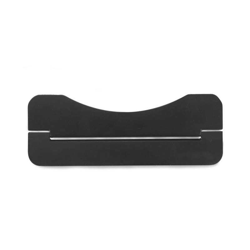 NOVINKA 2025. Foldable laptop stand. Made in durable ABS with anti-slip TPR protections for a solid fit to the device.Height adjustable, compact folding size and presented in a suede case with drawstring closure and inside an individual design box.