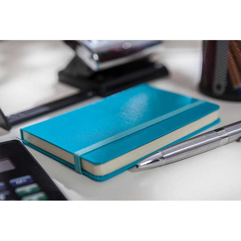 Notebook ATTENDANT in DIN A6 format with rounded off corners, rubber band to close and integrated bookmark, 80 pages, ruled, 80g/m2
