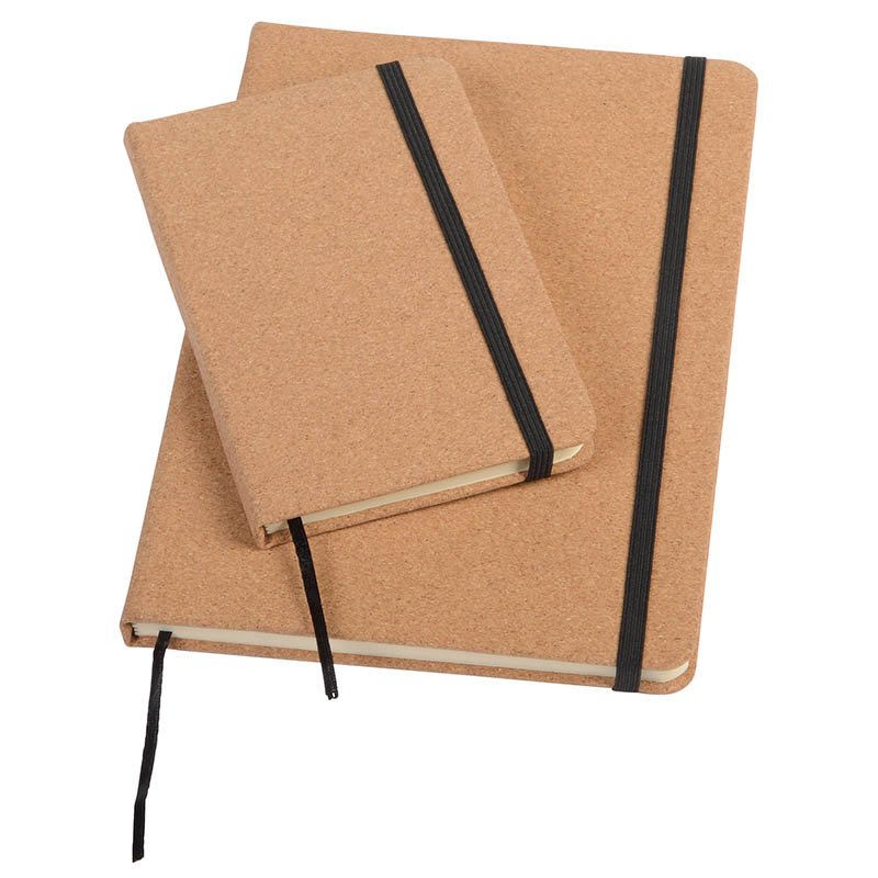 Blok A5 s deskami z přírodního korku s 80 čistými listy a gumičkou.