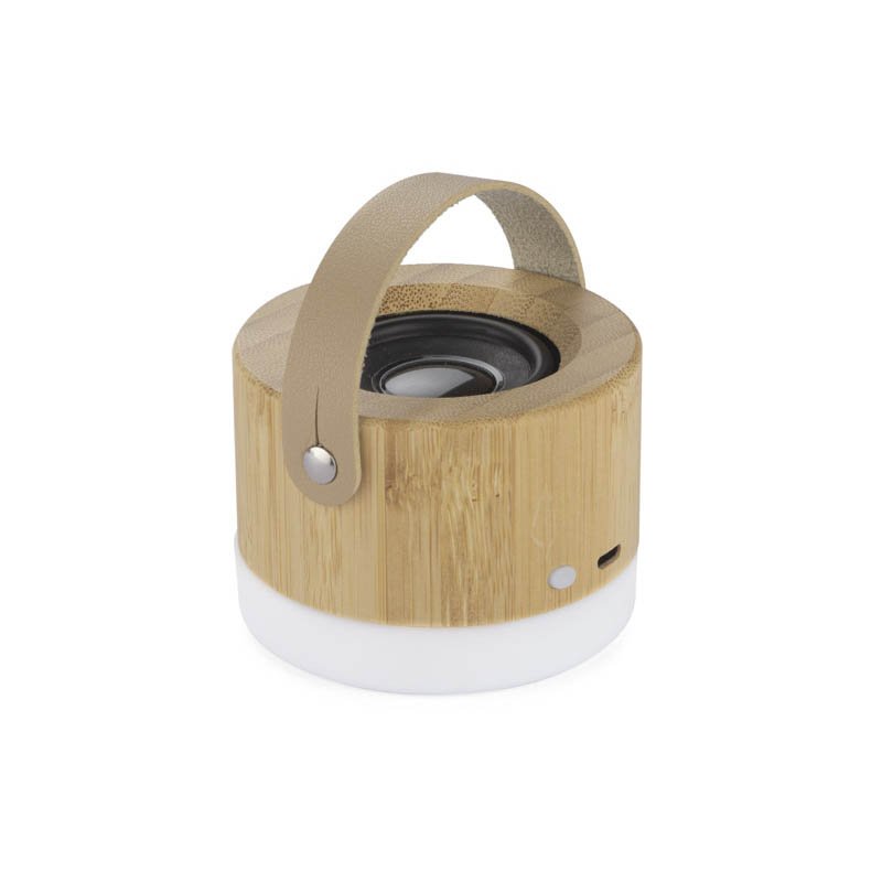 Přenosný reproduktor vyrobený z bambusu a recyklovaného ABS (100% rABS). Bezdrátový přenos BT 5'0, má čtečku micro SD karet a port USB-A. Se 3W zvukového výkonu a 1 200 mAh baterií má výdrž přibližně 5 hodin. Tento reproduktor umožňuje přijímat hovory, ovládat hlasitost a seznam skladeb vašeho mobilního zařízení. Součástí je nabíjecí kabel USB. Dodáváno v dárkové krabičce z kraftového papíru. Protože je výrobek vyroben z přírodních materiálů, barva a velikost výrobku a výsledek tisku se mohou u jednotlivých výrobků lišit. 135 x 40 x 65 mm