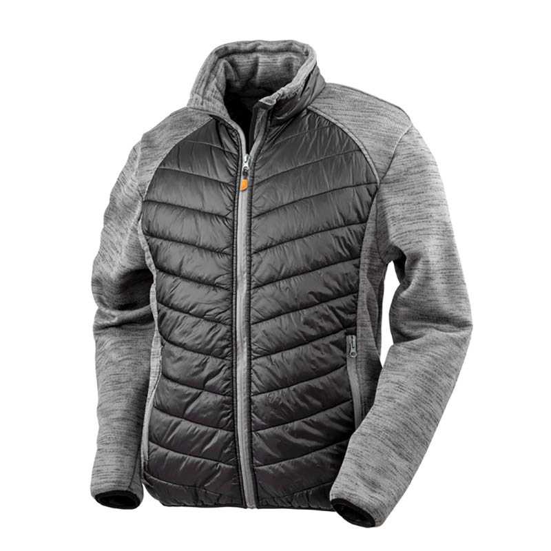Padded insulation Ready to brand tag free Soft stretch and quilted insulation with natural movement YKK zip with Interchangeable colour zip pulls Zipped inside & side pockets Padded body Bound cuff and hem Brushed inner Chin guard. Arms: 380g/m2 100% knitted Polyester Outer body: 100% Nylon Filling: 100% Polyester Lining: 100% Polyester