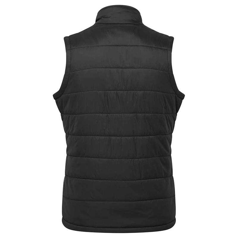 Vnější vrstva: 100 % recyklovaný nylon.Podšívka a výplň: 100 % recyklovaný polyester.38 gsm.Zateplená vesta na zip s vodorovným lemováním.Dvě boční kapsy na zip.Teplé, lehké a odolné proti vodě.Recyklovaný polyester z použitých 24 plastových lahví.Certifikace Global Recycled Standard (GRS).