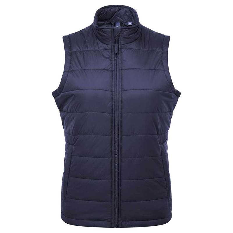 Vnější vrstva: 100 % recyklovaný nylon.Podšívka a výplň: 100 % recyklovaný polyester.38 gsm.Zateplená vesta na zip s vodorovným lemováním.Dvě boční kapsy na zip.Teplé, lehké a odolné proti vodě.Recyklovaný polyester z použitých 24 plastových lahví.Certifikace Global Recycled Standard (GRS).