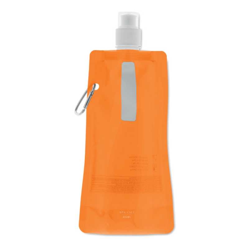 Skládací lahev z PE se zamačkávacím uzávěrem (systém push-pull). Obsahuje průhledný uzávěr a karabinu. Objem až 460 ml. 120 x 265 x 30 mm