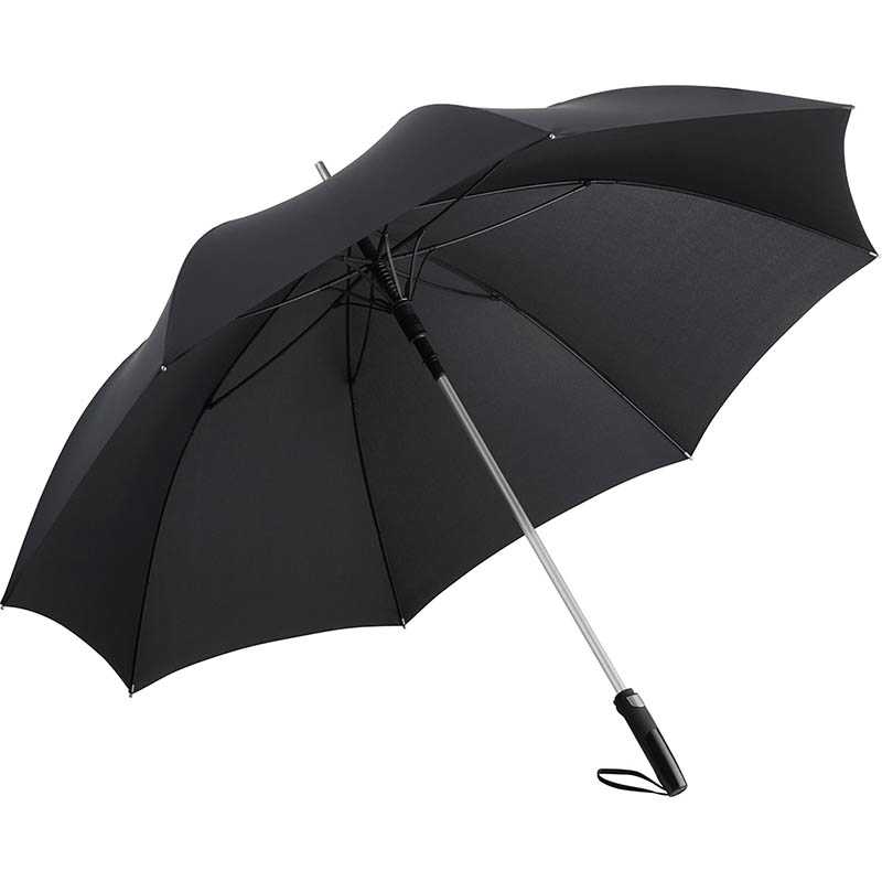 Convenient automatic function for quick opening, high-quality Windproof PLUS system for maximum frame flexibility in stormy conditions, flexible fibreglass ribs, aluminium shaft with dull metallic colour, matching metal tips, closing strap with noticeable metal press button, matt / shiny contrasting Soft-Feel handle with integrated push-button and promotional labelling option