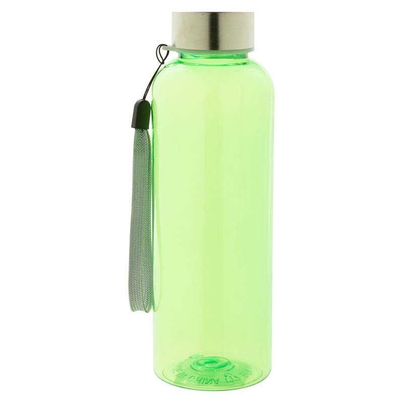 RPET láhev s nerezovým uzávěrem a popruhem, 500 ml. Bez BPA. Nevhodné pro sycené nápoje.