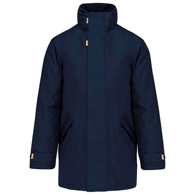 Waterproof Parka with Pockets.Made of outer waterproof flat weave, smooth inner lining and inner quilting for ensuring excellent thermal insulation. Stand-up collar with full-zip velcro flap front closure, for warmth and comfort. Hidden hood that can be easily opened and closed by velcro closure and also can be used as a raincoat. Two slanted zippered waist pockets and an inner left chest velcro pocket for a secure and convenient storage.Includes an inside back zip for easy marking with different methods: screen printing, embroidery, transfer printing, shields, vinyl application. Ideal as promotional clothing, workwear and outdoor activities.
