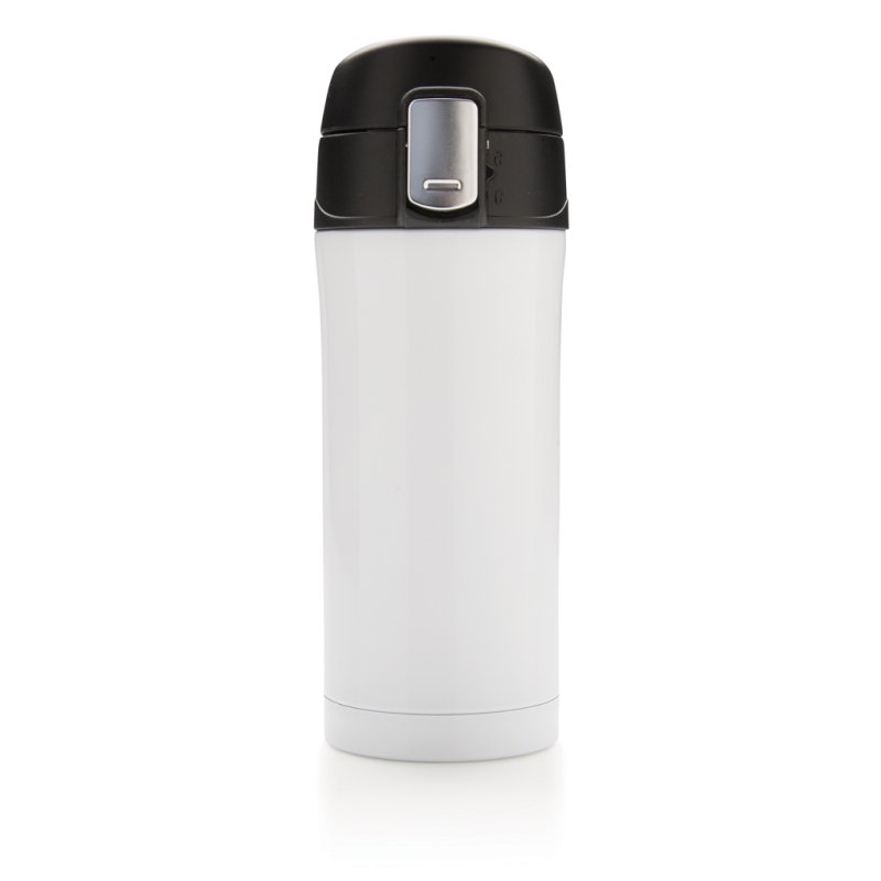 Termohrnček s objemom 320 ml s dvojitou stenou z nerezovej ocele, vnútornou stenou z vylepšenej ocele 18/8 a tlačidlovým uzáverom, netečúci. Špeciálny 360° náustok umožňuje pitie zo všetkých strán. Dno hrnčeka je vyrobené z vodotesnej termoplastickej gumy