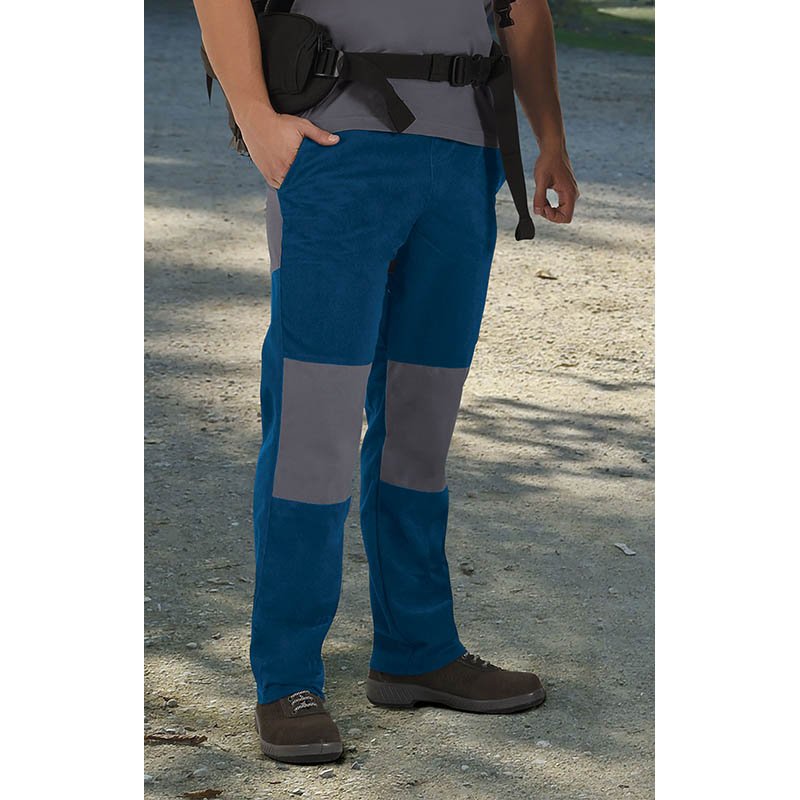 Multi-Pocket Work Trousers. Made of a sturdy cotton twill fabric blended with polyester for strength and durability.Button-and-zipped flap fastening, back elasticated waistband and belt loops for a better adjustment and a comfortable fit.Two slanted hip pockets, a right back one, a right side velcro flap cargo pocket and a puller for easy opening, a left side accessories compartment for convenient storage.Double main seams and extra high-wear reinforcements with safety bartacks, ensuring long-lasting strength and durability.Suitable marking methods: screen printing, embroidery, transfer printing, vinyl application. Ideal as workwear and uniforms.