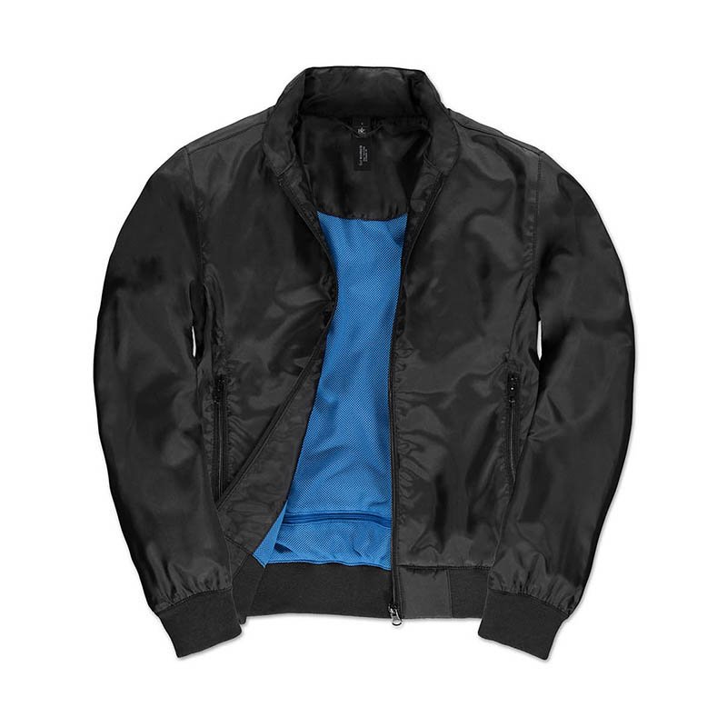 TRENDY LIGHTWEIGHT BOMBER JACKET ·Ergonomic concealed hood ·Diamond mesh lining ·Trendy lightweight bomber jacket with ergonomic concealed hood ·Fashionable contrasted mesh lining improves breathability and comfort ·Contemporary cotton feel heavy rib on cuffs and bottom hem ·Forward shoulder seams for better comfort and water protection · Zip at lower back for easy full decoration access (front - back - sleeves) ·Fabric tested for all print techniques and embroidery ·2 zipped hand pockets. Značka:B&C. Materiál:100% polyester 210T taffeta