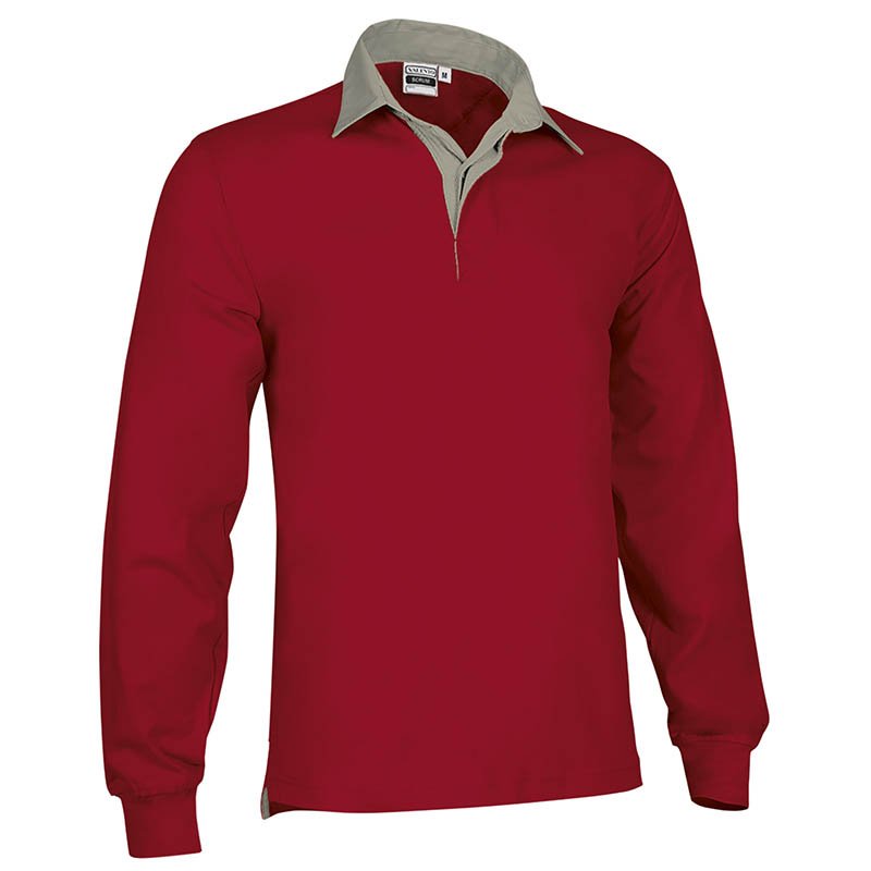 Two-Tone Long Sleeve Rugby Polo Shirt.Made of 100% cotton thick knit fabric for a soft and comfortable feel.Cream twill collar with semi-circular reinforcement at the back to keep its shape, and a three-layered central placket closure with two hidden buttons.Elasticated ribbed cuffs for comfortably fitting.Double stitching on bottom hem and side slits for enhanced mobility and greater comfort.Includes a pocket for sewing and showcasing different suitable marking methods: screen printing, embroidery, transfer printing, badges, shields. Ideal as sportswear, promotional clothing and casual wear.