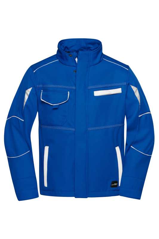 Profesionální pracovní bunda v klasickém vzhledu.Odolný softshell (320g/m2), uvnitř fleece.Vodě a větru odolná (2 000 mm vodní sloupec, prodyšnost 2 000g/m2/24h).Stojací límec, prodloužený zadní díl.Ergonomický tvar rukávů.Schovaný zip s ochranou krku.Boč
