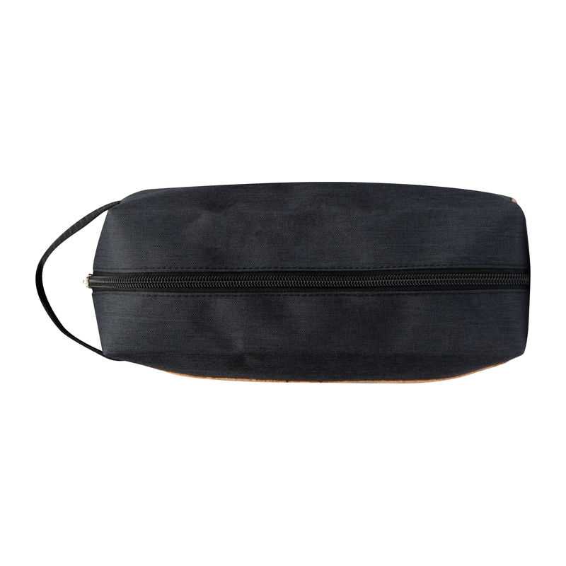 Kozmetická taštička / toaletná taštička z polyesteru s korkovým dnom, praktickým popruhom na ruku a zipsom. Ideálne na výlety a exkurzie.