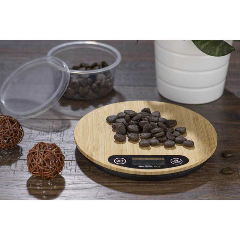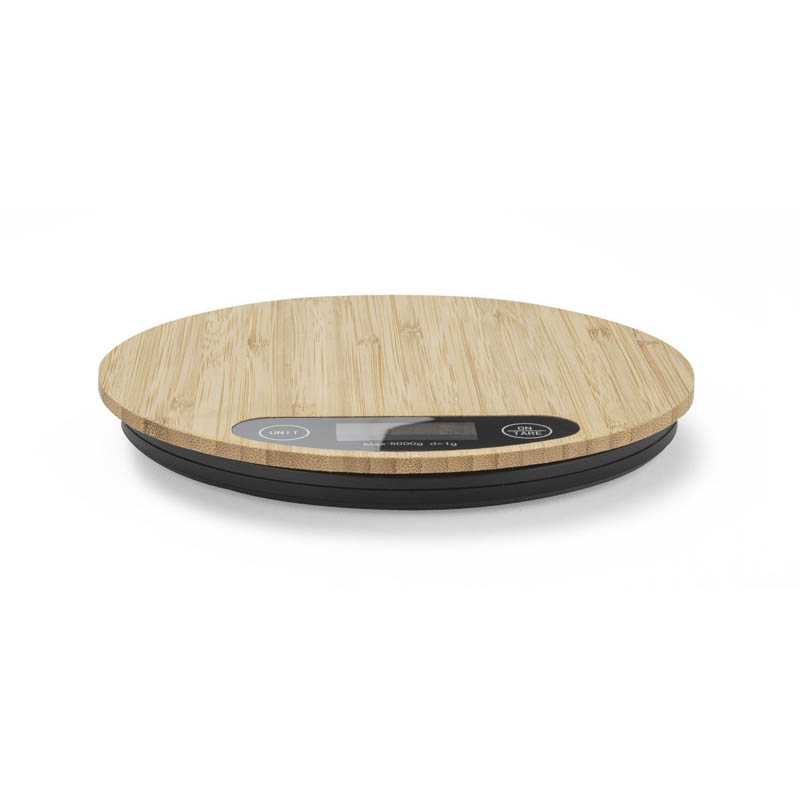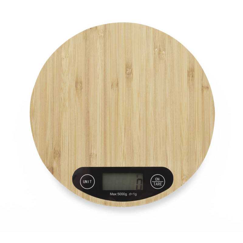 Elektronická kuchyňská váha CIRCA s povrchovou úpravou z přírodního bambusu. Technické informace: - maximální rozsah měření je 5 kg, - přesnost měření až 1 g, - jednotky měření: kg/lb a ml/oz - funkce tárování - vyžaduje 2x baterie AAA. Baterie nejsou součástí balení.