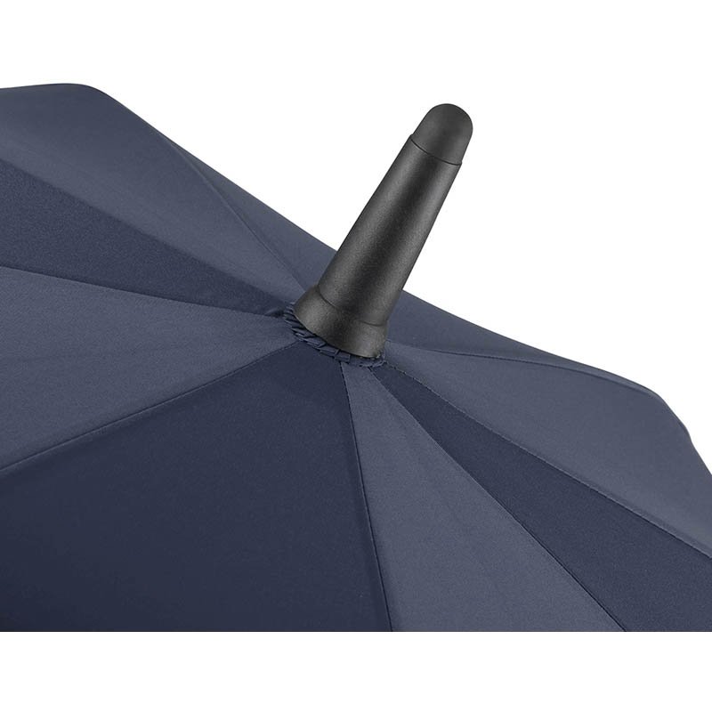 Convenient automatic function for quick opening, high-quality Windproof PLUS system for maximum frame flexibility in stormy conditions, flexible fibreglass ribs, two-coloured comfortable Soft-Feel handle with integrated push-button, speaker and promotional labelling option, higher corrosion protection due to galvanized steel shaft, Batteries (2 x AAA) included in the scope of delivery.