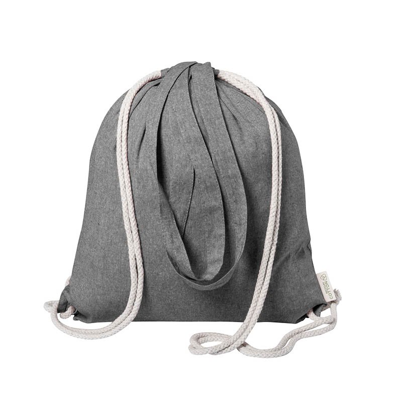 Vak na stahování šňůrkou z recyklované bavlny se silnými pletenými šňůrami a dlouhými uchy. Lze jej také použít jako nákupní tašku. 100% recyklovaná bavlna, 140 g/m2.