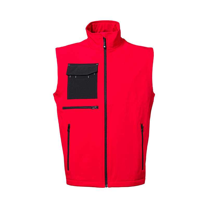 NOVINKA 2025. 3-LAYER SOFT SHELL VEST WATERPROOF AND BREATHABLE - 95% polyester - 5% elastane - Waterproof 8000 mm - Breathability 1000 - YKK taped zippers - Three external zip pockets - One chest pocket with triple pen holder and reflective reinforcement stitching - Reflective piping behind the neck - Central zip with internal windproof fabric - Chin protection fabric