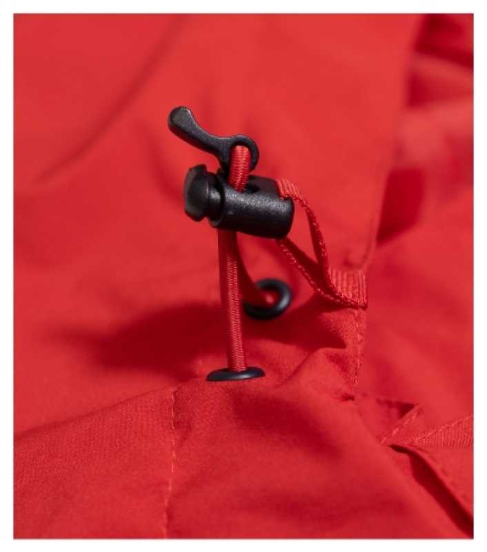 ľahký vodeodolný materiál s membránou, úprava BIONIC FINISH® ECO zabraňujúca prieniku vody, strih s bočnými dielmi, vodeodolný zips zakončený krytkou brady, snímateľná kapucňa na sťahovateľnú šnúrku, lemy rukávov nastaviteľné suchým zipsom, bočné vrecká s