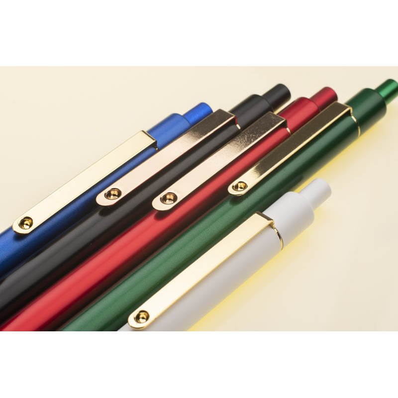 Stylová hliníková propiska s matnou konečnou úpravou a zlatým klipem.