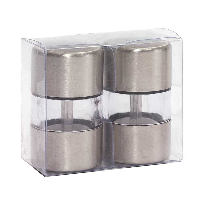 Salt and pepper shaker set SPICE FLAVOR made of stainless steel, with transparent window, twist mechanism and ceramic grinder, in transparent gift box