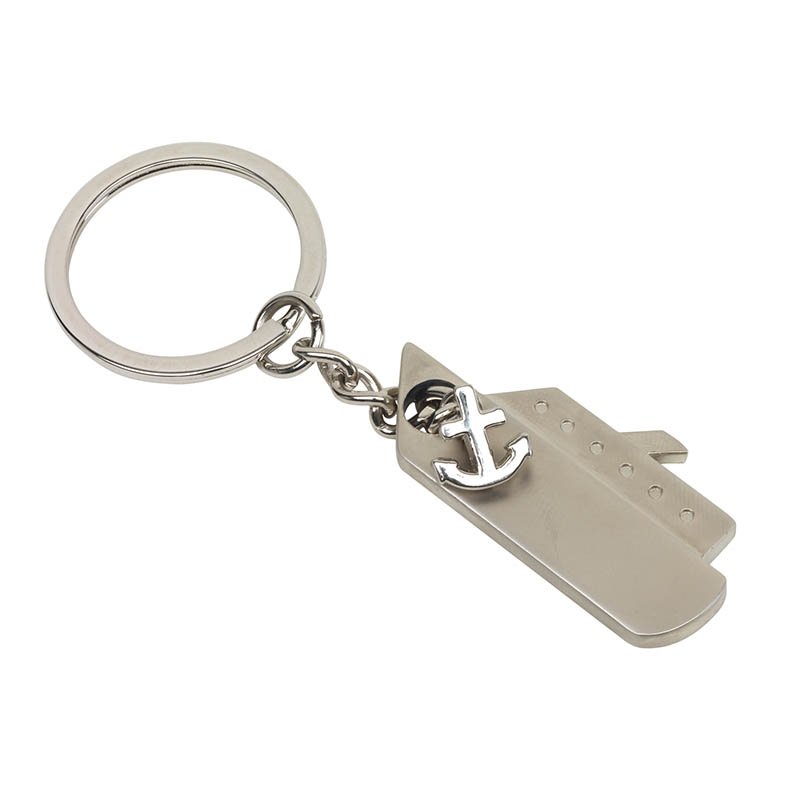 Kovový přívěšek na klíče ve tvaru kormidla, v černé dárkové krabičce.
