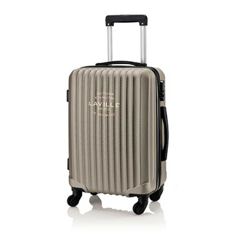 Cabin ABS trolley with 4 wheels. 3-digit combination lock, adjustable retractable metal trolley and side handle. The interior with lining is divided into 2 separate compartments and a mesh pocket for objects with zip closure. Dimension: 20” (34 x 22 x h 5