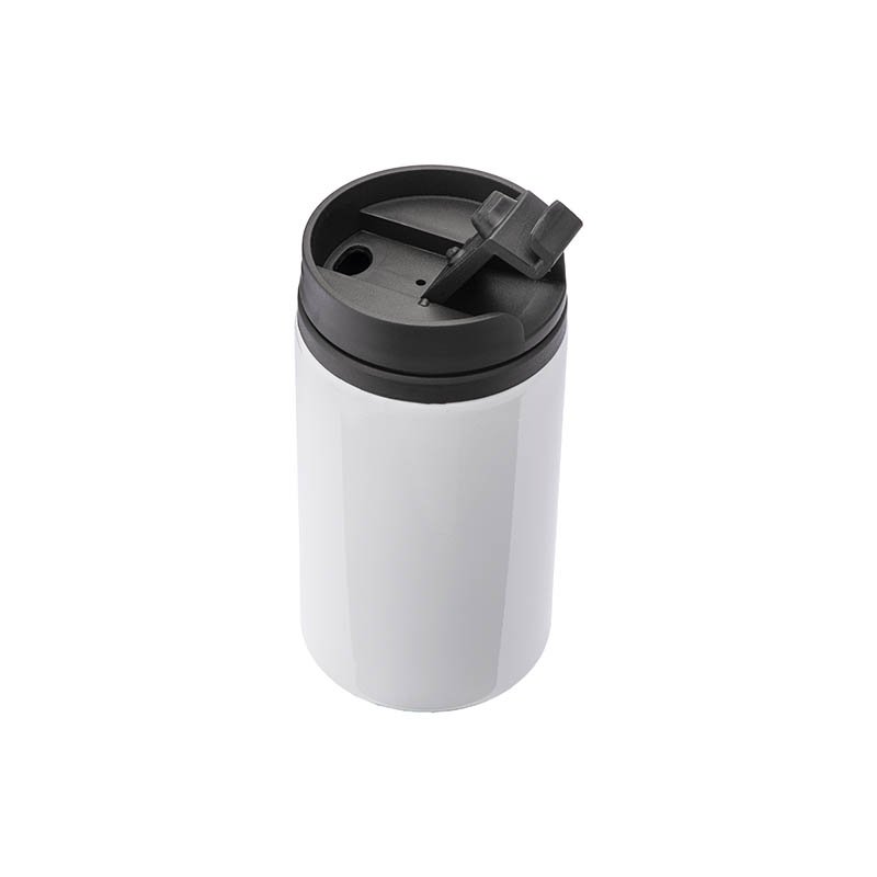 NOVINKA 2025. Double-walled thermal cup made of recycled PP, combined with a base made of recycled stainless steel. With a capacity of 300 ml.With a lid with an easy-opening dispenser and an anti-leak hermetic sealing system. BPA-free.Includes a practical transport strap, ideal for easy carrying in any situation. Food Grade certified, guaranteeing safety when food comes into contact with the material used to manufacture the product. Includes a Recycled Stainless Steel designation.Recycled PP is highly recyclable and strong plastic, suitable for many applications.Steel is one of the most demanded materials and can be found almost everywhere, from daily use products to large constructions. With countless properties, including durability and a high degree of reusability, making it a highly valued alternative in sustainability solutions. When properly treated, it allows for obtaining new resources of infinite use.