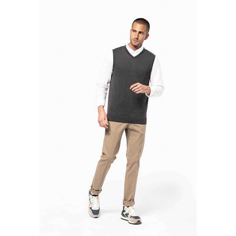 V-Neck Knitted Vest.Made of 100% acrylic fine knitted fabric, soft to the touch, breathable and with excellent thermal insulation.Ribbed V-neck, wide, comfortable and stylish.Elasticated ribbed waistband and armholes for comfortably fitting.Suitable marking methods: embroidery, stitching. Ideal as workwear, corporate uniform and school uniform.