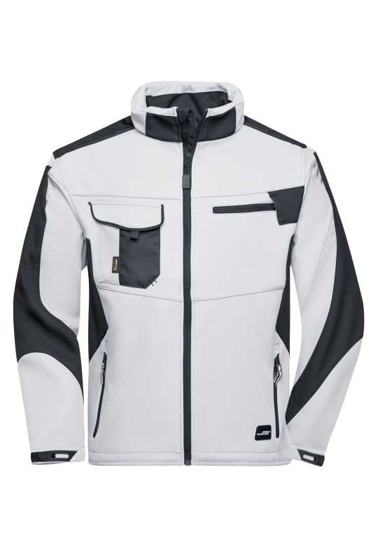 Odolná PRACOVNÍ softshellová bunda.Vodě a větru odolná.Vodní sloupec 2.000 mm, paropropustnost (2.000g/m2/24h).Části bundy jsou z materiálu Cordura.Zip s klopou, boční kapsy na zip, náprsní kapsa, vnitřní kapsy.Reflexní detaily na rukávech a na zádech .Ba